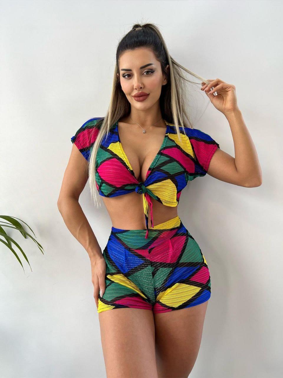 Mavi Sarı Yeşil Kumaş Şort Takım